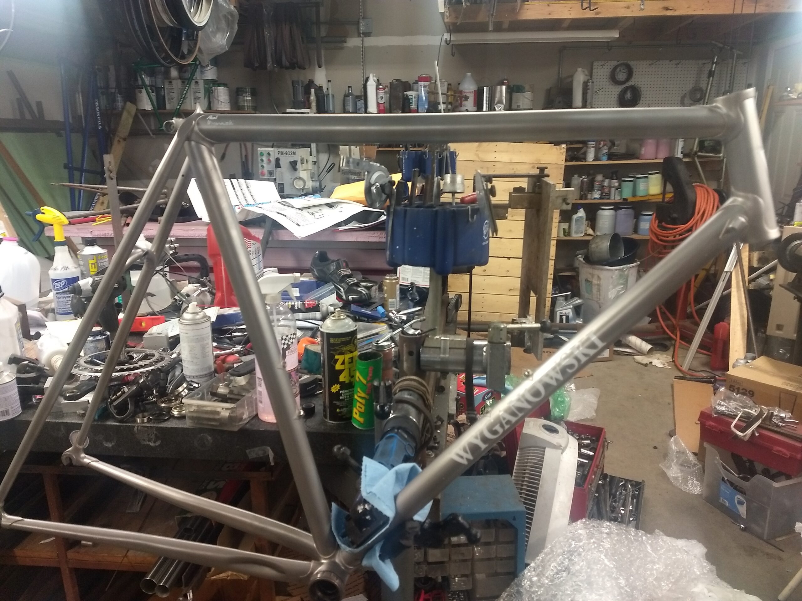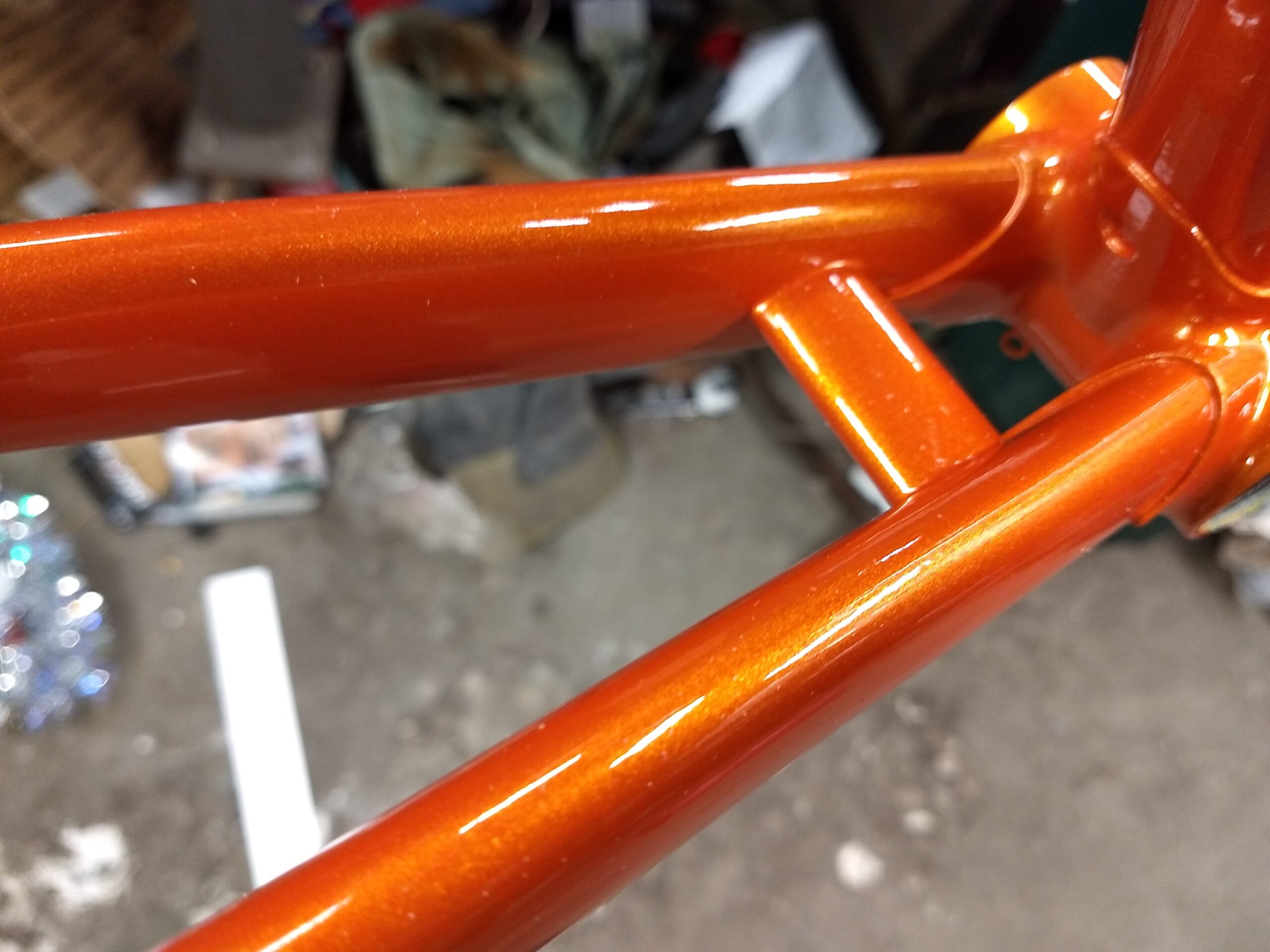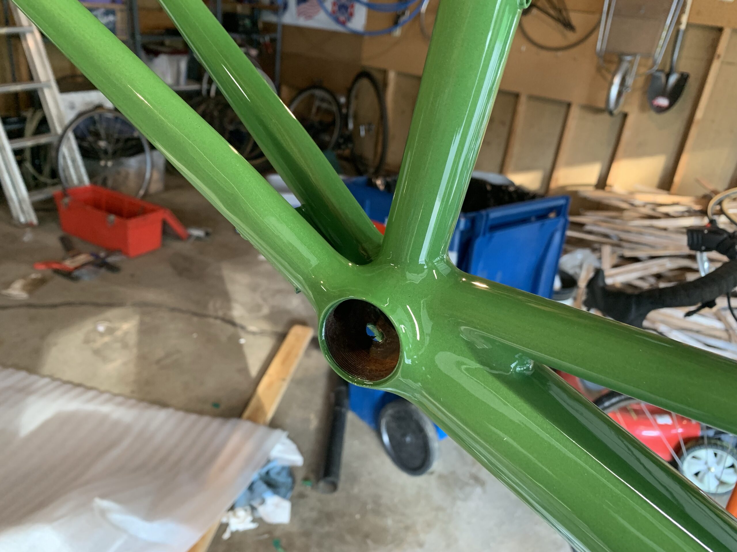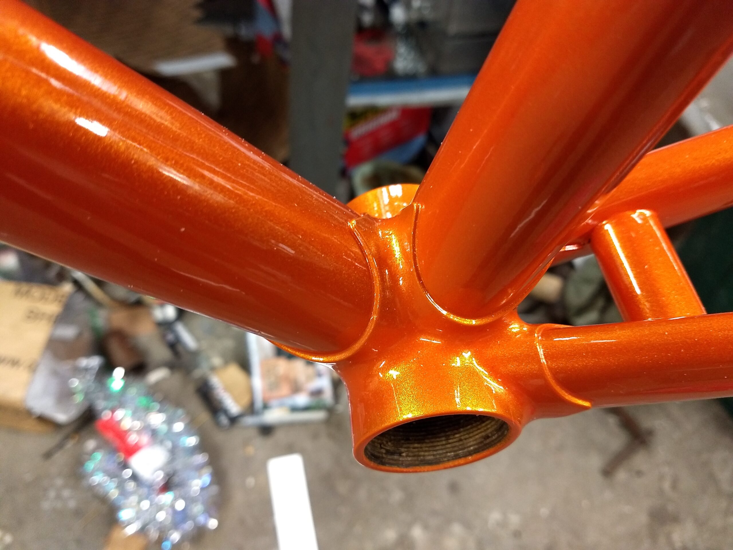 Zinc phosphate doing its job and rust free steel even after 16 years with last paint job. I was bummed as I was going to loose the zinc coating with this frames last paint job with a powder primer and the powder version of a zinc phosphate rust proofing.