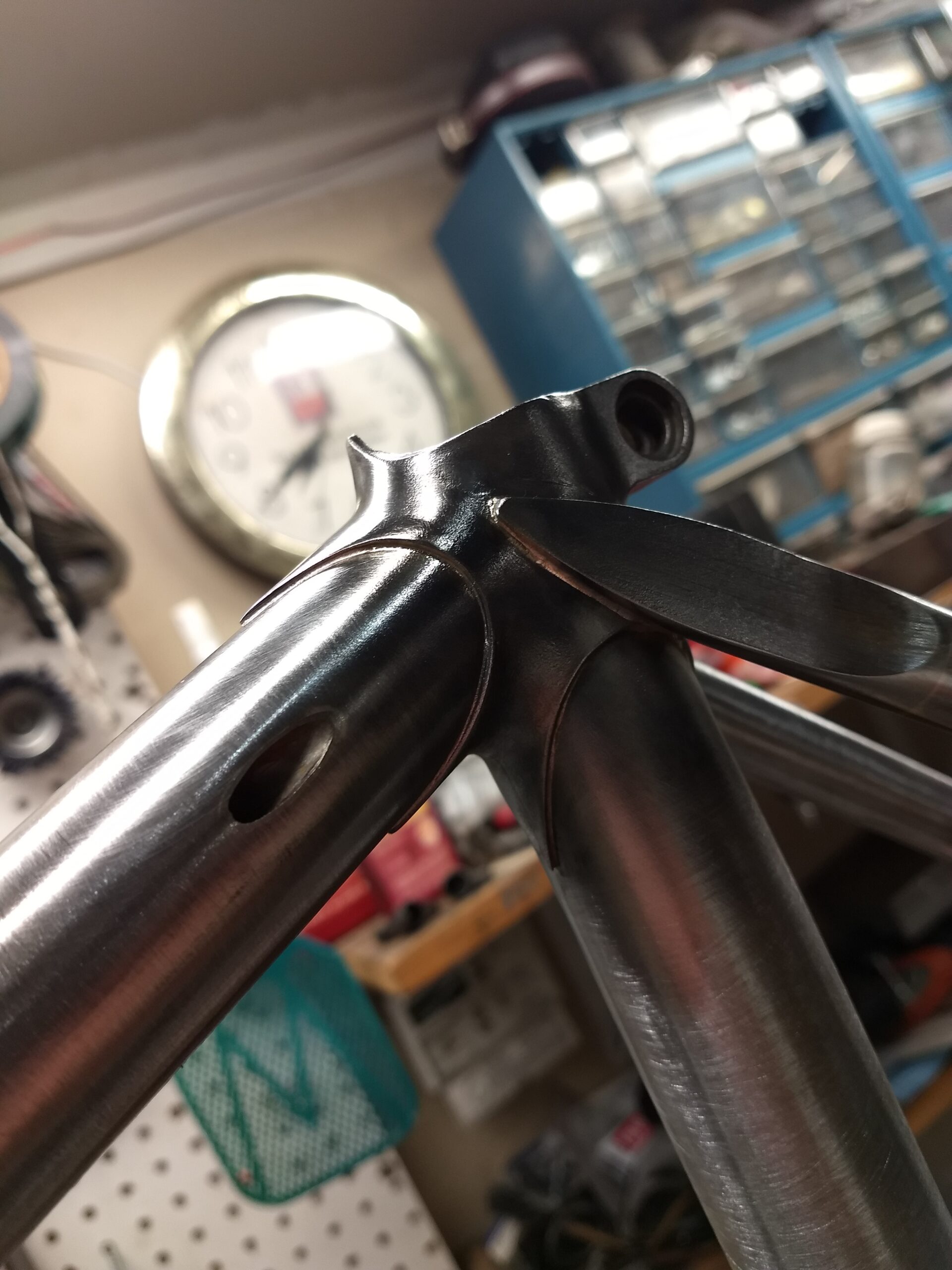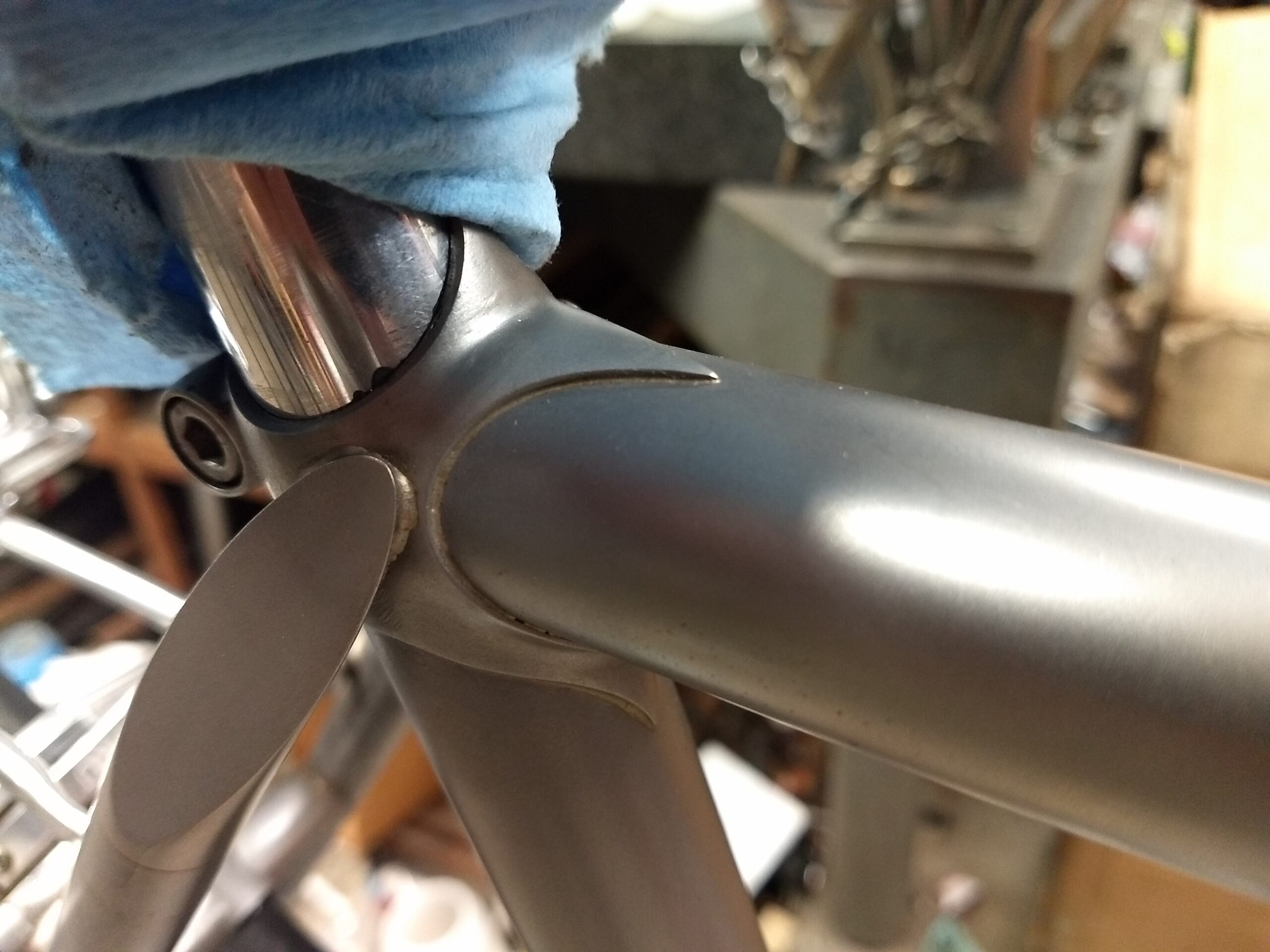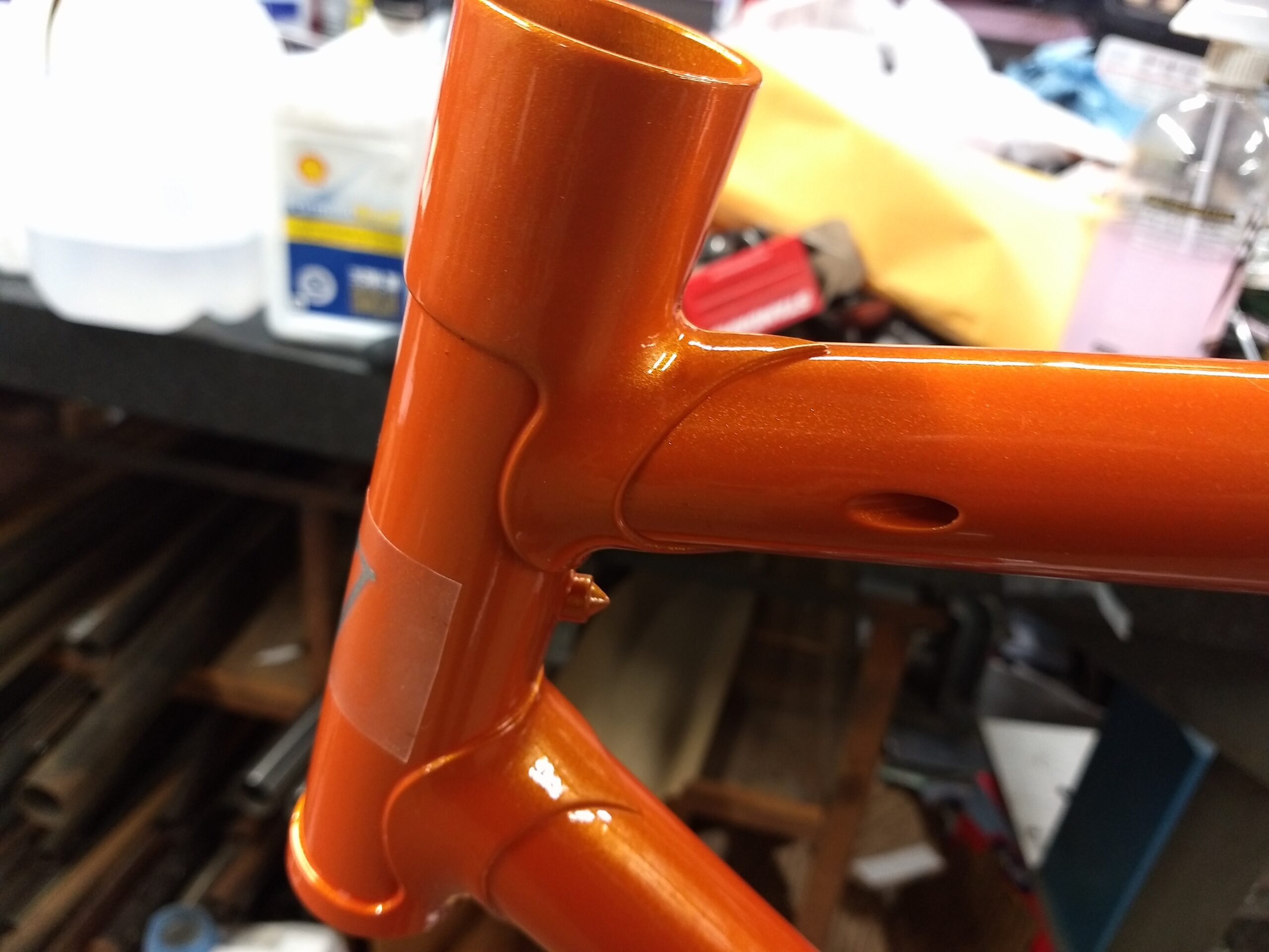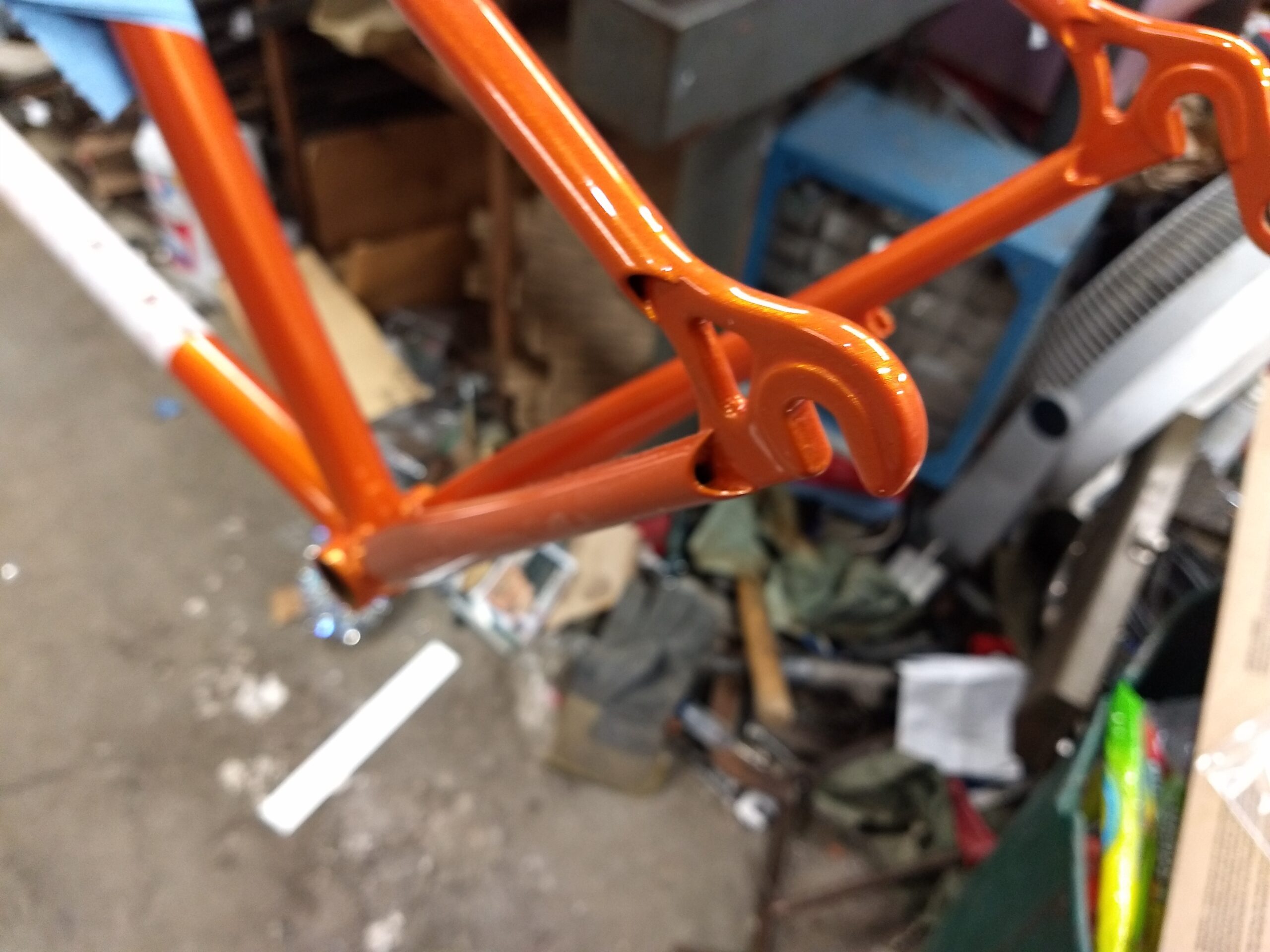 Zinc phosphate doing its job and rust free steel even after 16 years with last paint job. I was bummed as I was going to loose the zinc coating with this frames last paint job with a powder primer and the powder version of a zinc phosphate rust proofing.