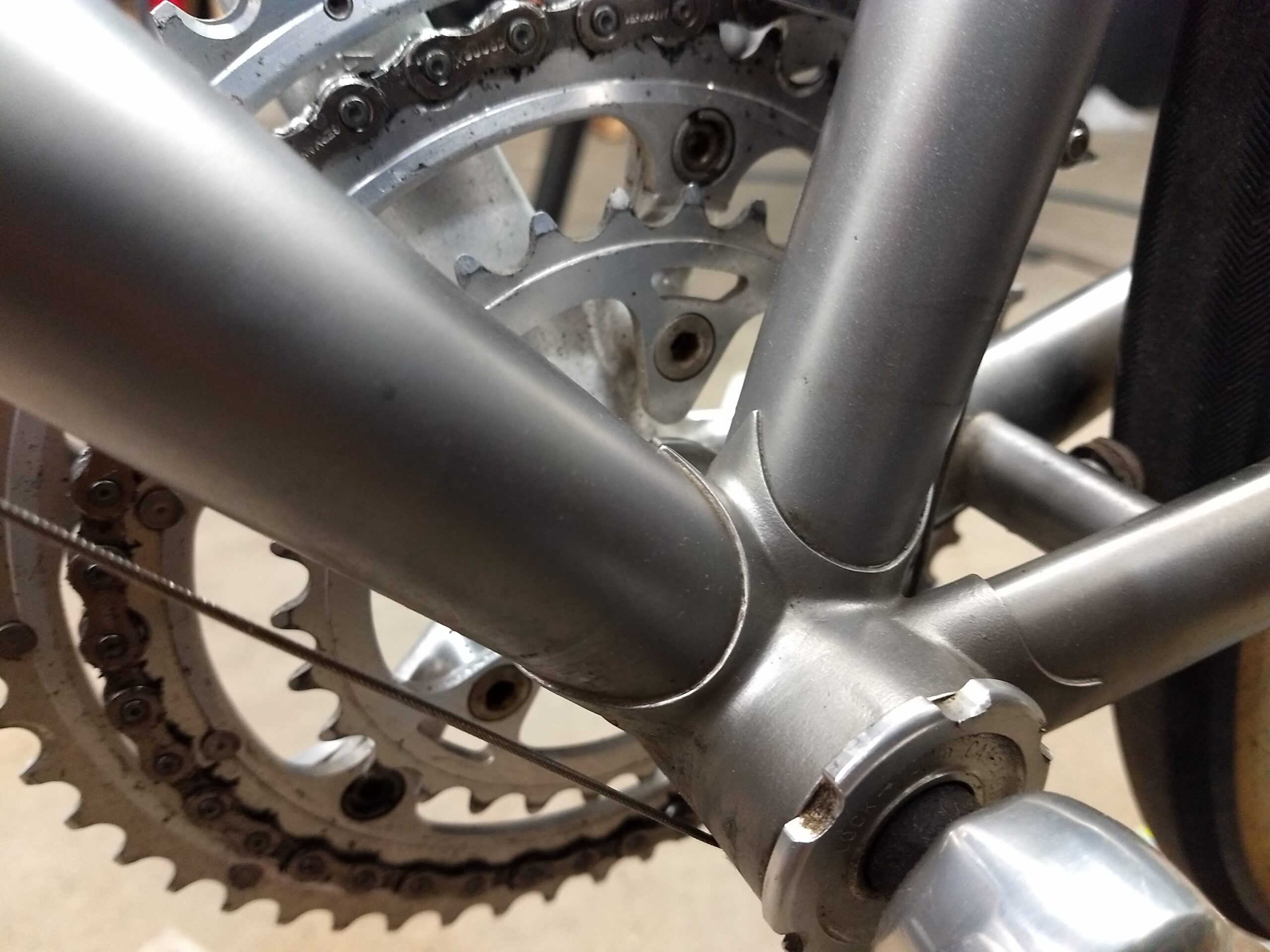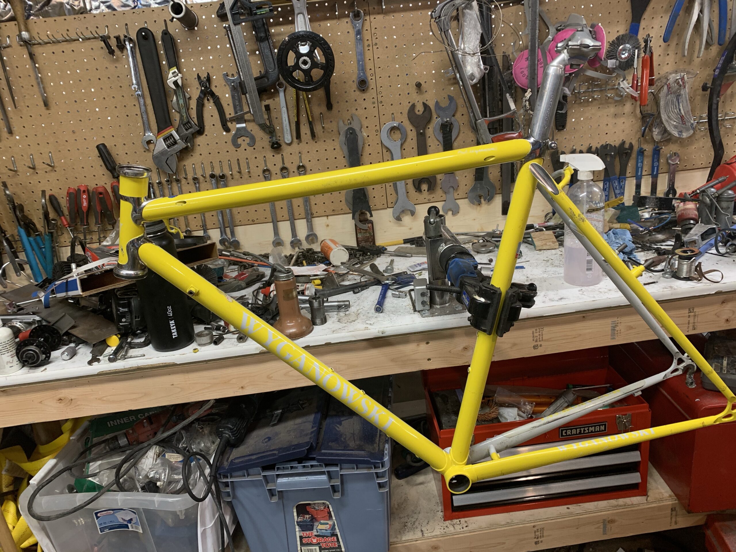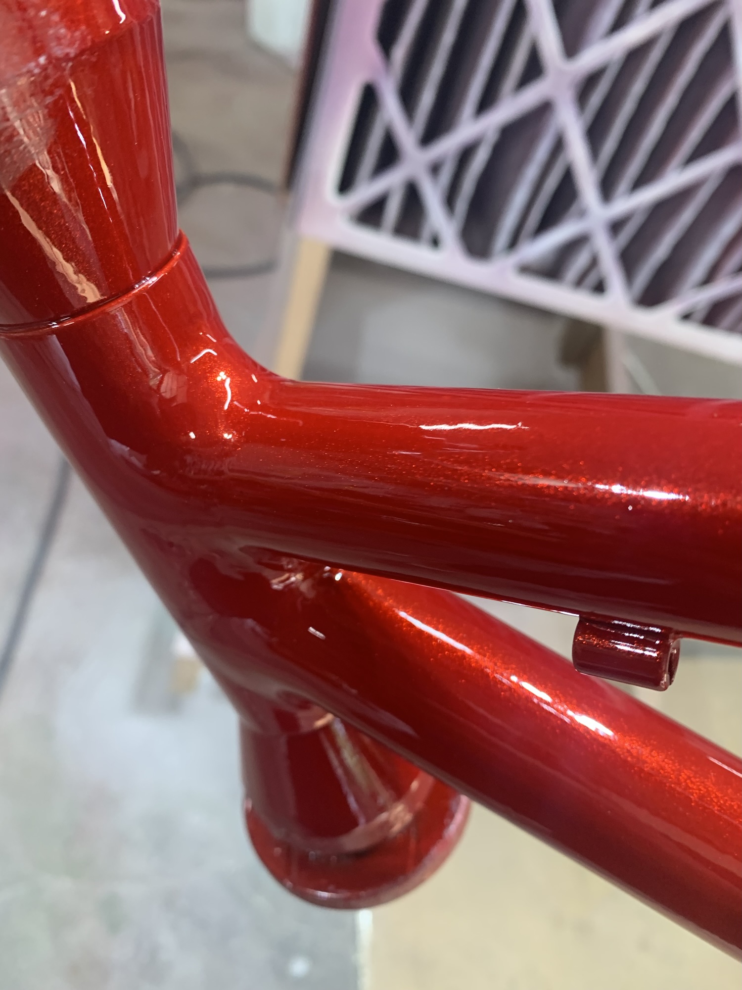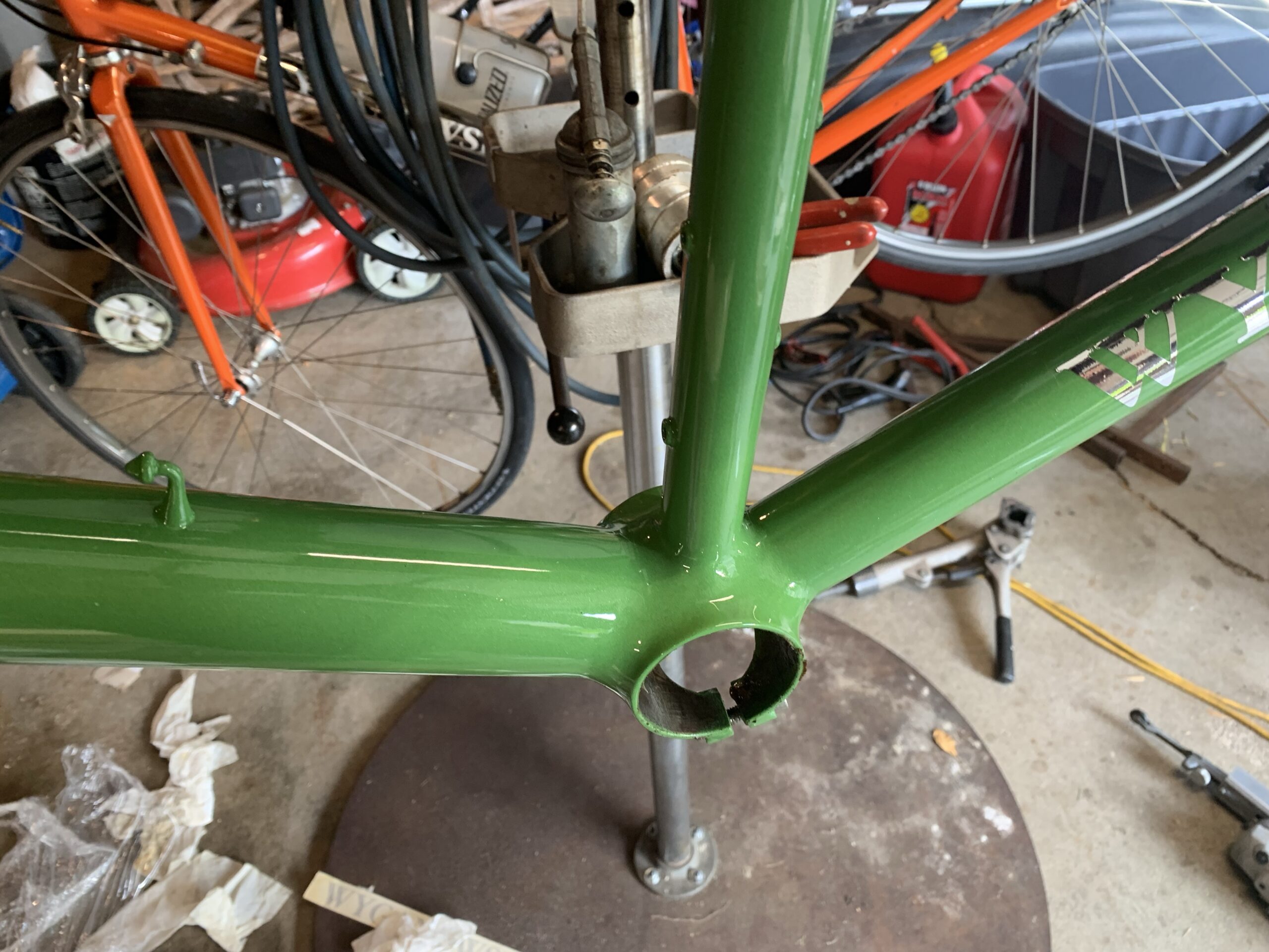 Zinc phosphate doing its job and rust free steel even after 16 years with last paint job. I was bummed as I was going to loose the zinc coating with this frames last paint job with a powder primer and the powder version of a zinc phosphate rust proofing.