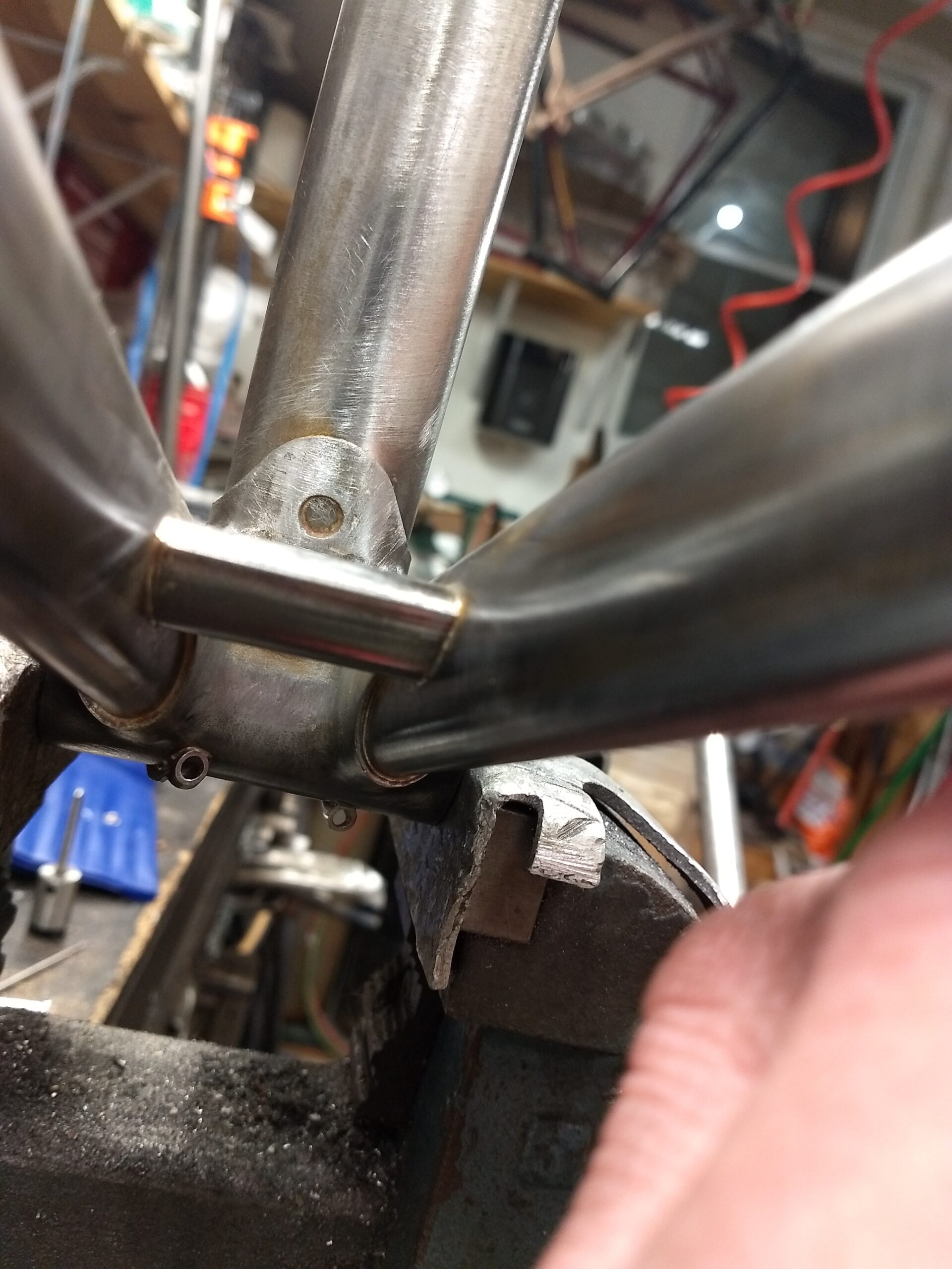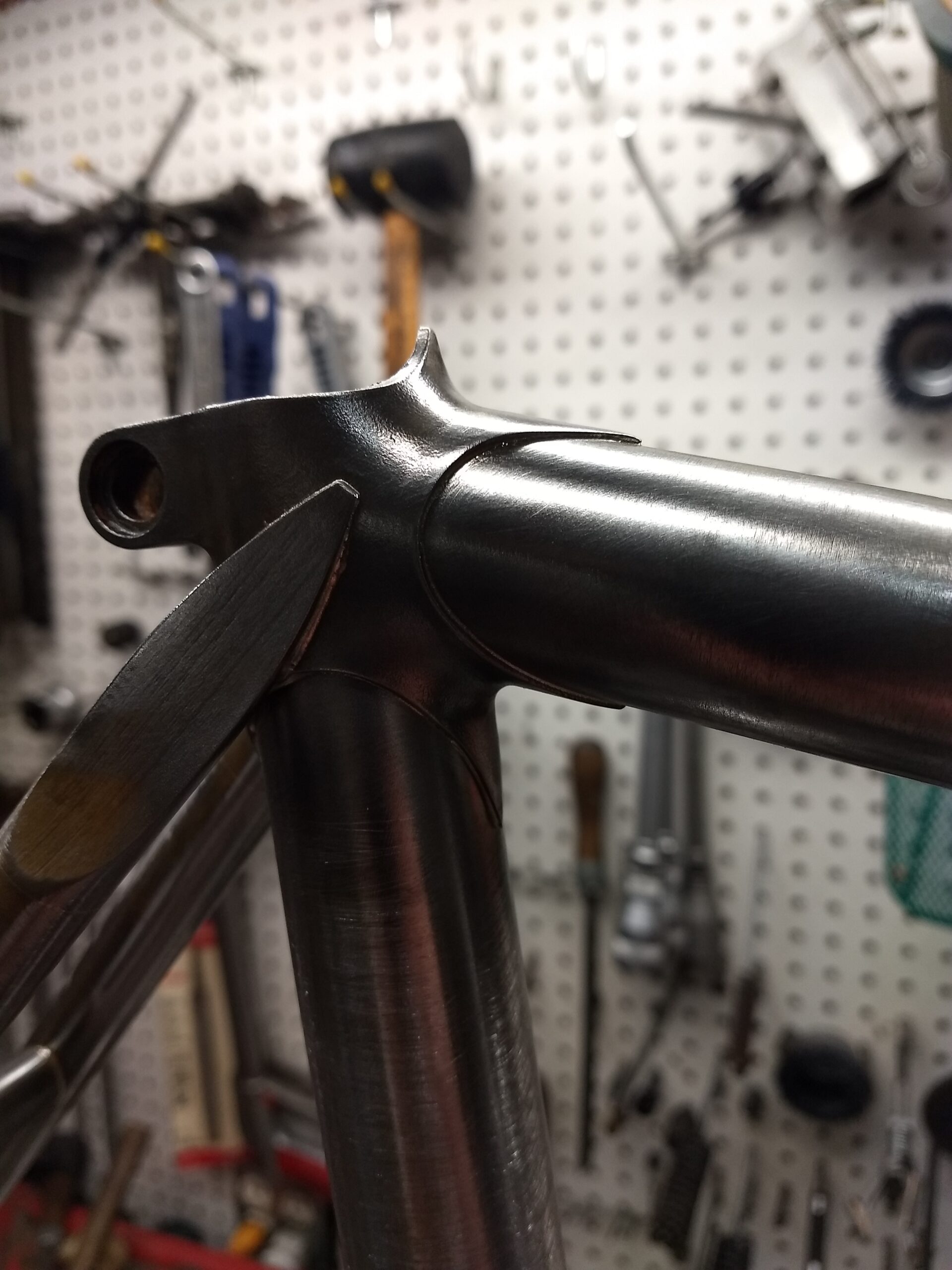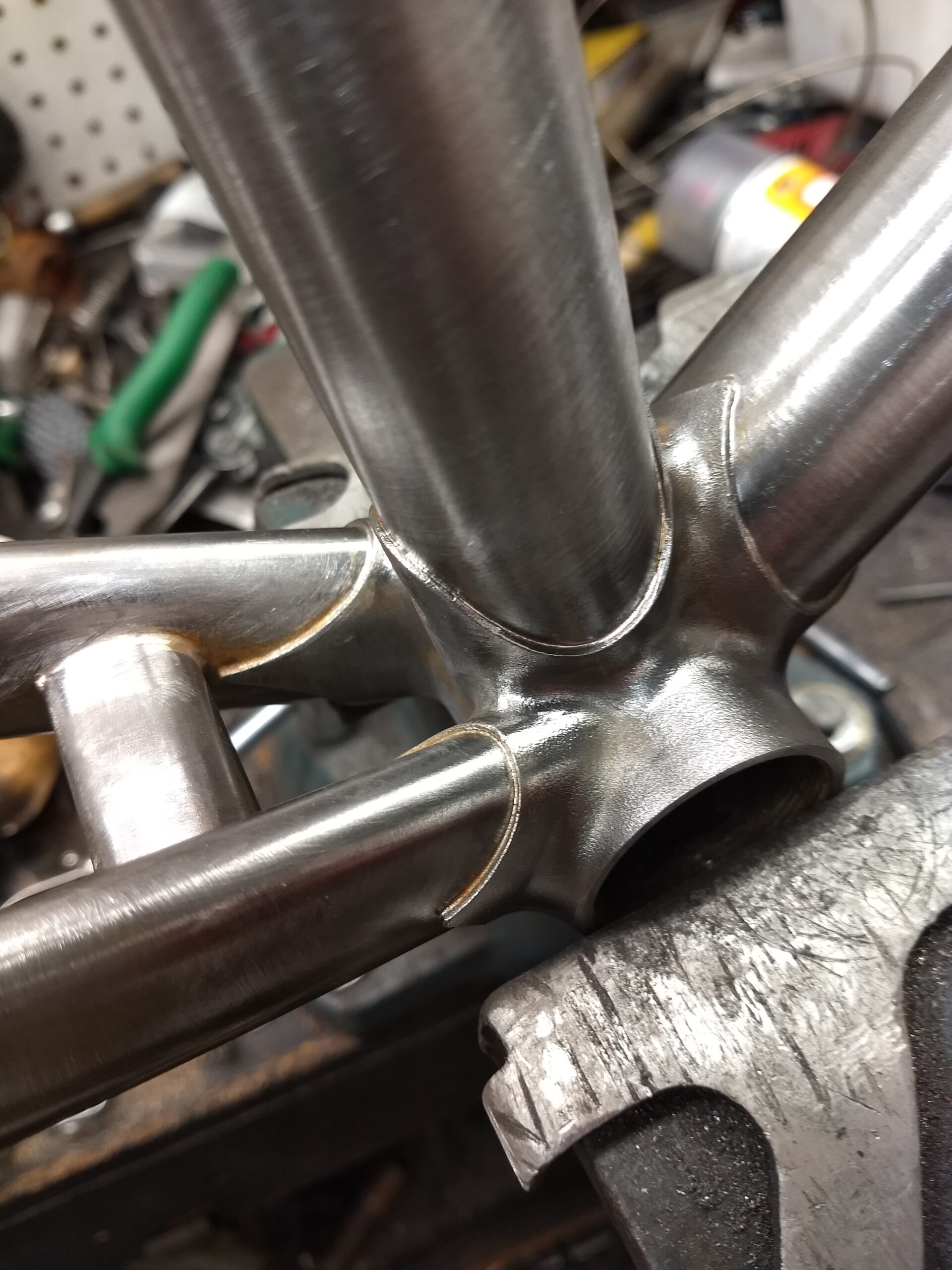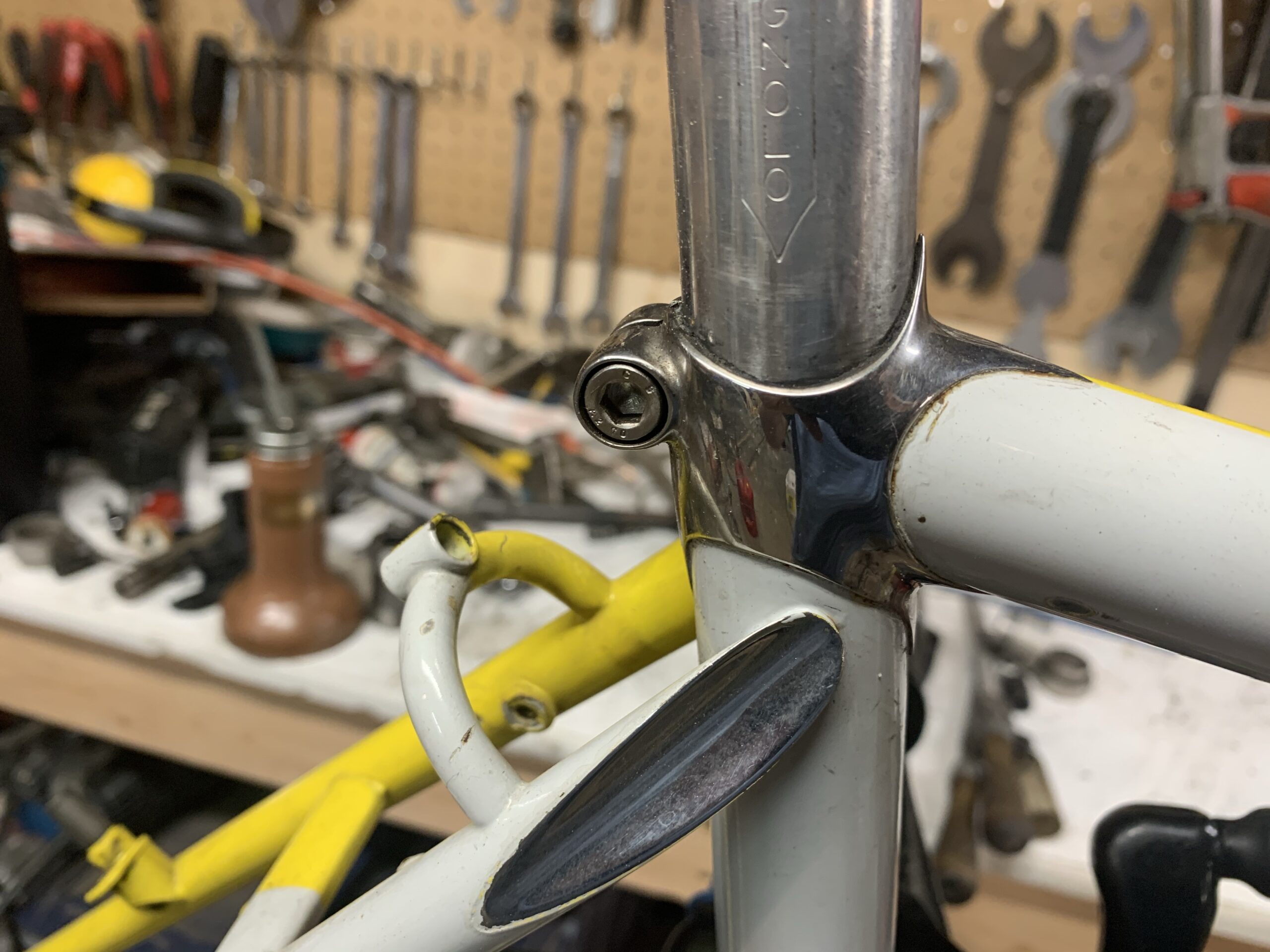 Zinc phosphate doing its job and rust free steel even after 16 years with last paint job. I was bummed as I was going to loose the zinc coating with this frames last paint job with a powder primer and the powder version of a zinc phosphate rust proofing.
